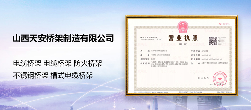 山西天安橋架制造有限公司是一家生產(chǎn)電纜橋架、母線槽的大型廠家,主要生產(chǎn):槽式橋架、托盤式橋架、梯級式橋架、大跨距橋架、母線槽有空氣型、密集型、耐火型、鋁合金等以及通風管、可根據(jù)客戶要求定制各種型號各種規(guī)格,表面處理有熱鍍鋅、防火噴塑、防火漆、熱鍍鋅等,產(chǎn)品廣泛應(yīng)用于石油、化工、治金、電力、紡織、通訊、高層建筑等各個領(lǐng)域。產(chǎn)品具有外形美觀,耐腐蝕性強,安裝靈活方便,品種齊全等特點。